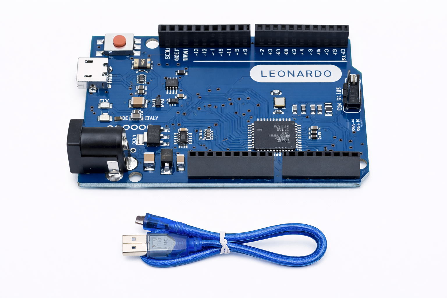 La Leonardo R3 compatible con Arduino es una potente y versátil tarjeta de desarrollo basada en el microcontrolador Atmega32u4. Ideal para tus proyectos de electrónica y robótica, esta placa destaca por su conectividad USB nativa, que le permite emular directamente dispositivos como un teclado, mouse, joystick o usar el protocolo USB-HID (Human Interface Device). ¡Integra fácilmente tu proyecto con una computadora como si fuera un periférico!