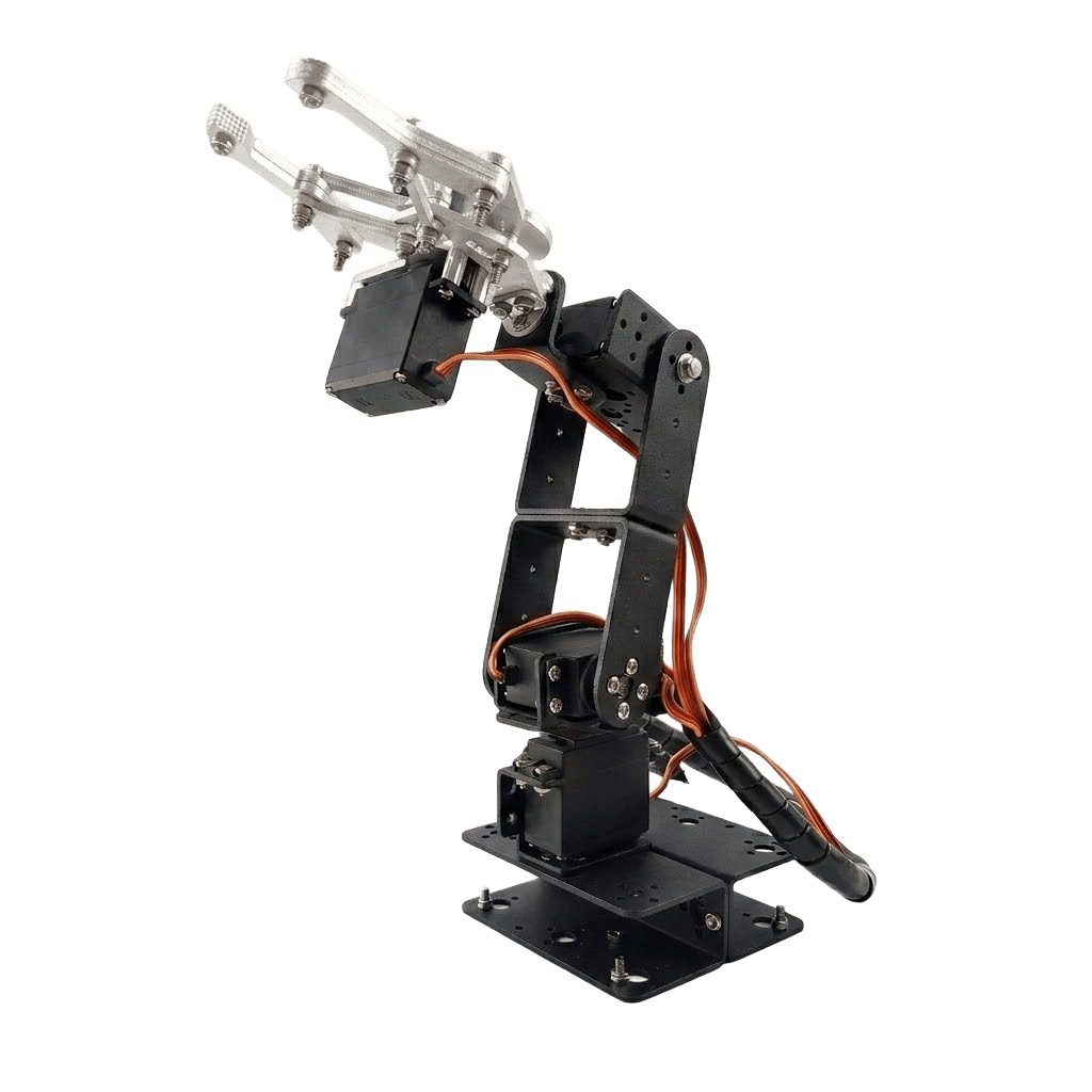 Potencia tu aprendizaje con una estructura mecánica de precisión. El Brazo Robótico de Aluminio Negro está diseñado para soportar largas jornadas de pruebas, proporcionando movimientos fluidos y una apariencia profesional que destaca en cualquier exposición tecnológica o competencia de robótica.