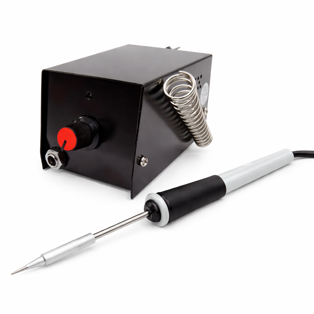 El cautín de estación para soldar 8W está pensado para trabajos ligeros y de precisión en electrónica. Gracias a su formato de escritorio con soporte metálico y control frontal, permite trabajar de forma más ordenada y estable en prácticas, prototipos y reparaciones de bajo consumo.