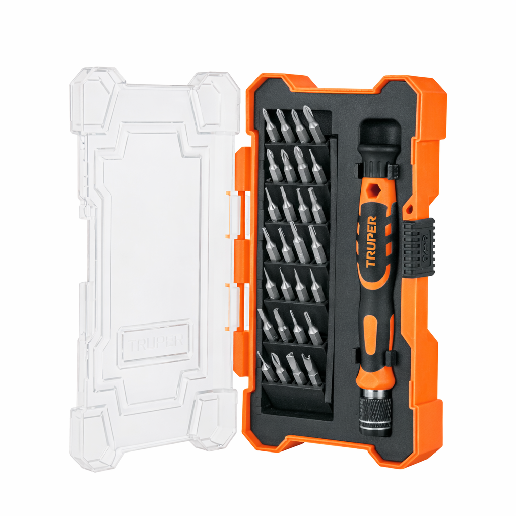 Diseñado para quienes necesitan precisión y comodidad, este set de desarmadores TRUPER incluye 28 puntas intercambiables en un práctico estuche. Perfecto para trabajos de electrónica, robótica y mantenimiento de dispositivos pequeños.