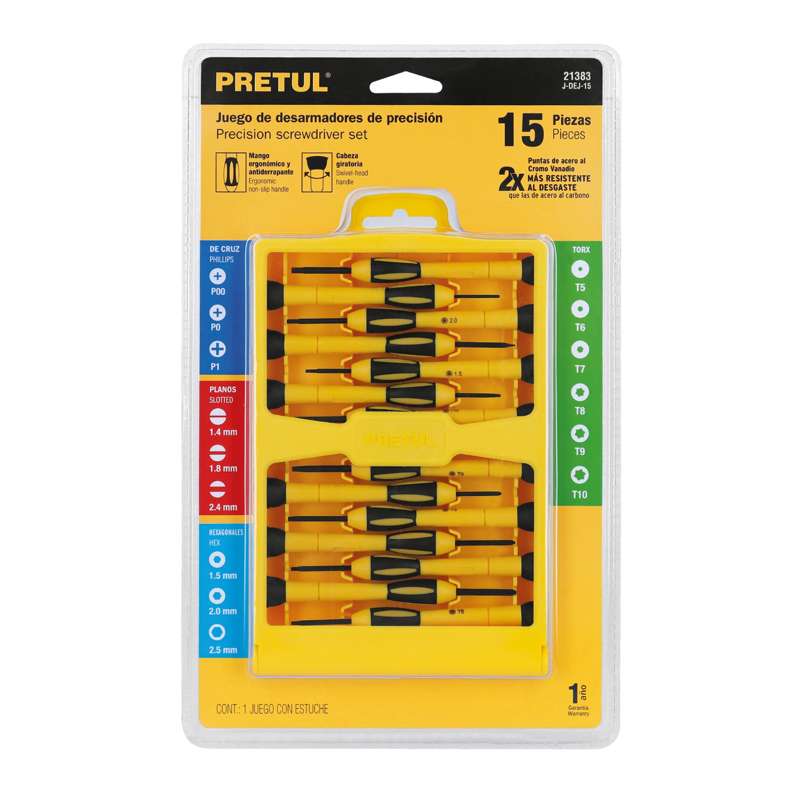 El juego de 15 desarmadores de precisión PRETUL ofrece herramientas confiables y ergonómicas para trabajos delicados en electrónica, mecánica fina y proyectos de robótica. Cada desarmador está diseñado para brindar comodidad y control en tareas de precisión.