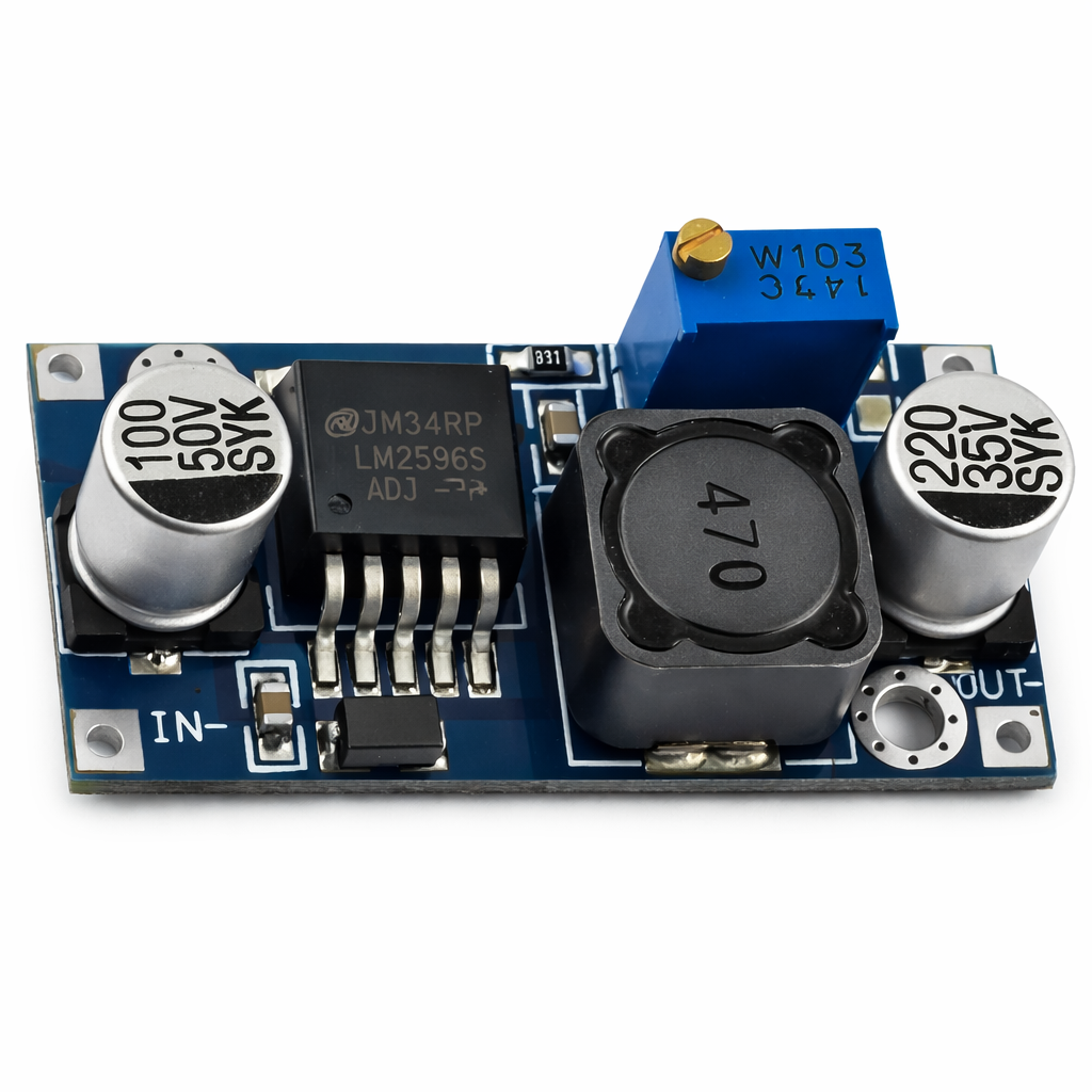 El LM2596 es un regulador de voltaje conmutado tipo Step-Down, ideal para proyectos de electrónica, robótica y fuentes de alimentación. Permite reducir voltajes de manera eficiente, brindando un control preciso de energía.