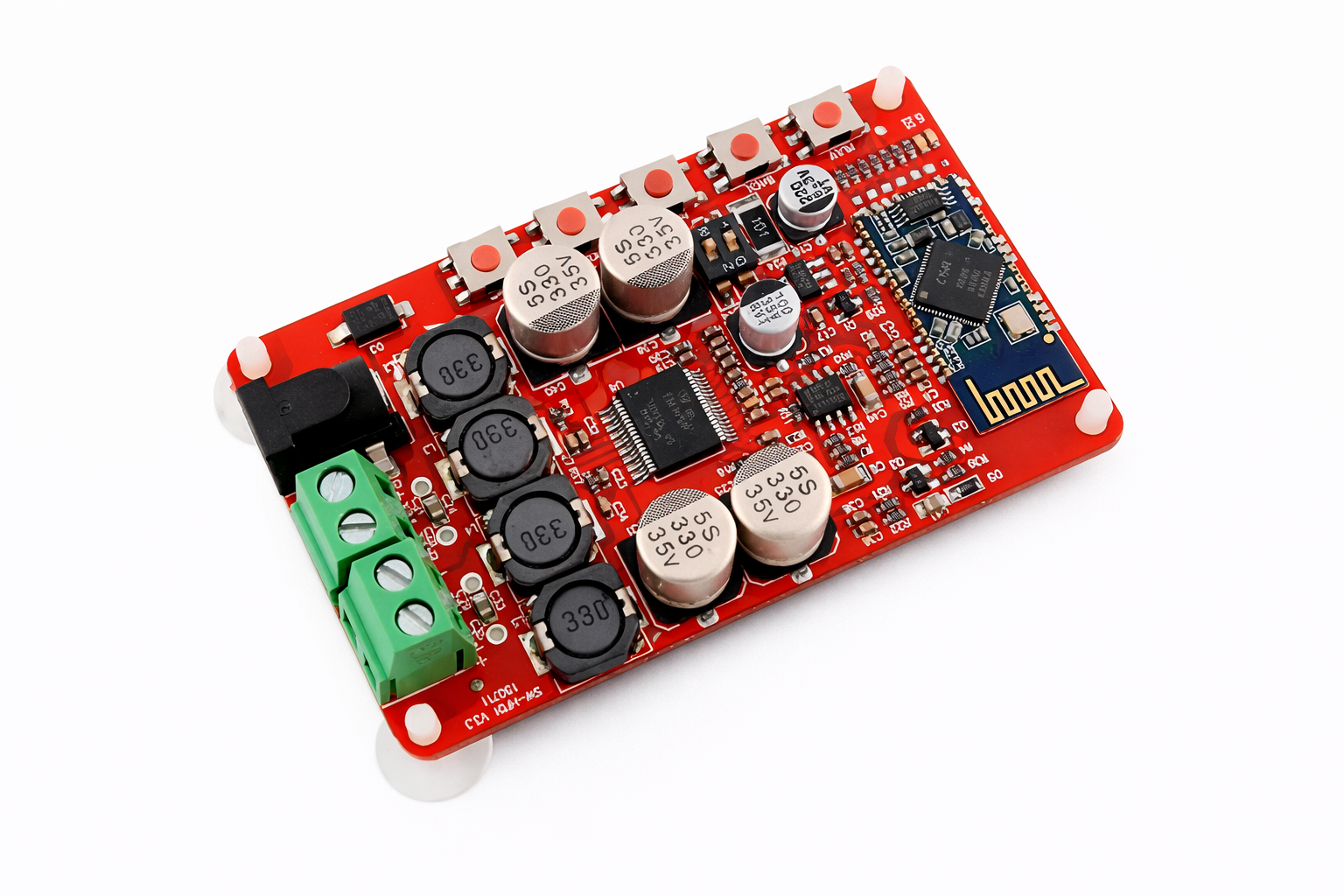 Se trata de un mini receptor de audio inalámbrico amplificador equipado con chip TDA7492P y bluetooth 4.0, con salida de audio estéreo 50W + 50W. Posee un ajuste de ganancia (DIP switch) que va desde 21,6dB a 33,6dB. Cuenta con un pulsador táctil integrado el cual controla la reproducción de audio (play, pre, next, V +, V-) ideal para los altavoces estéreo bluetooth DIY.