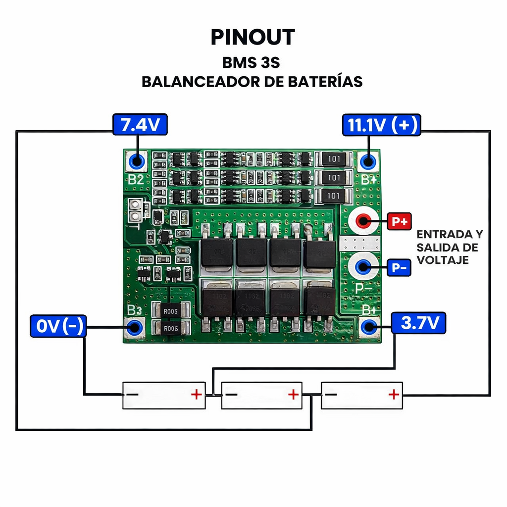 El Módulo Carga y Protección para Batería LiPo 3S 25A está diseñado para mantener tu batería LiPo segura mientras se carga. Este módulo proporciona las protecciones necesarias para evitar daños, garantizando que tu batería de litio funcione de manera eficiente durante todo el ciclo de carga.