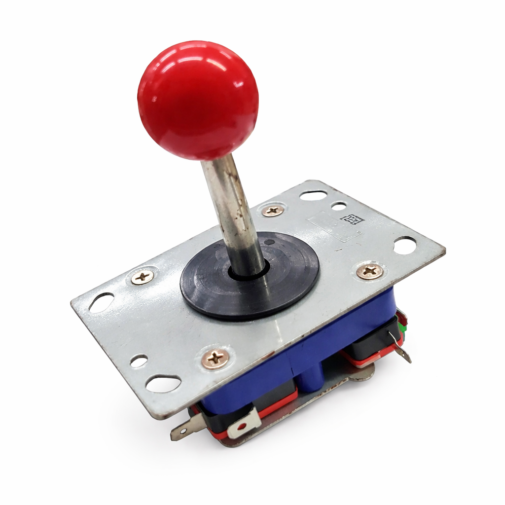 Palanca tipo joystick arcade ideal para máquinas de videojuegos, simuladores, consolas retro y proyectos DIY. Fabricada en materiales resistentes para soportar uso continuo, con mango esférico rojo y mecanismo interno de microinterruptores que garantizan movimientos precisos y respuesta rápida.