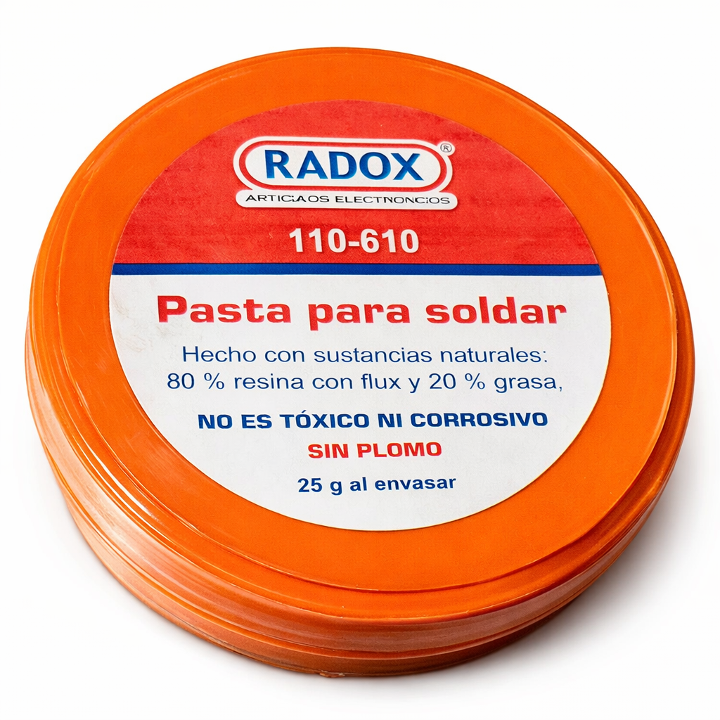 Mejora tus trabajos de soldadura con esta pasta para soldar sin plomo Radox de 25 g. Su formulación 80/20 y su presentación compacta la hacen ideal para apoyar procesos de ensamblado, reparación y retrabajo en electrónica educativa, laboratorio y taller.