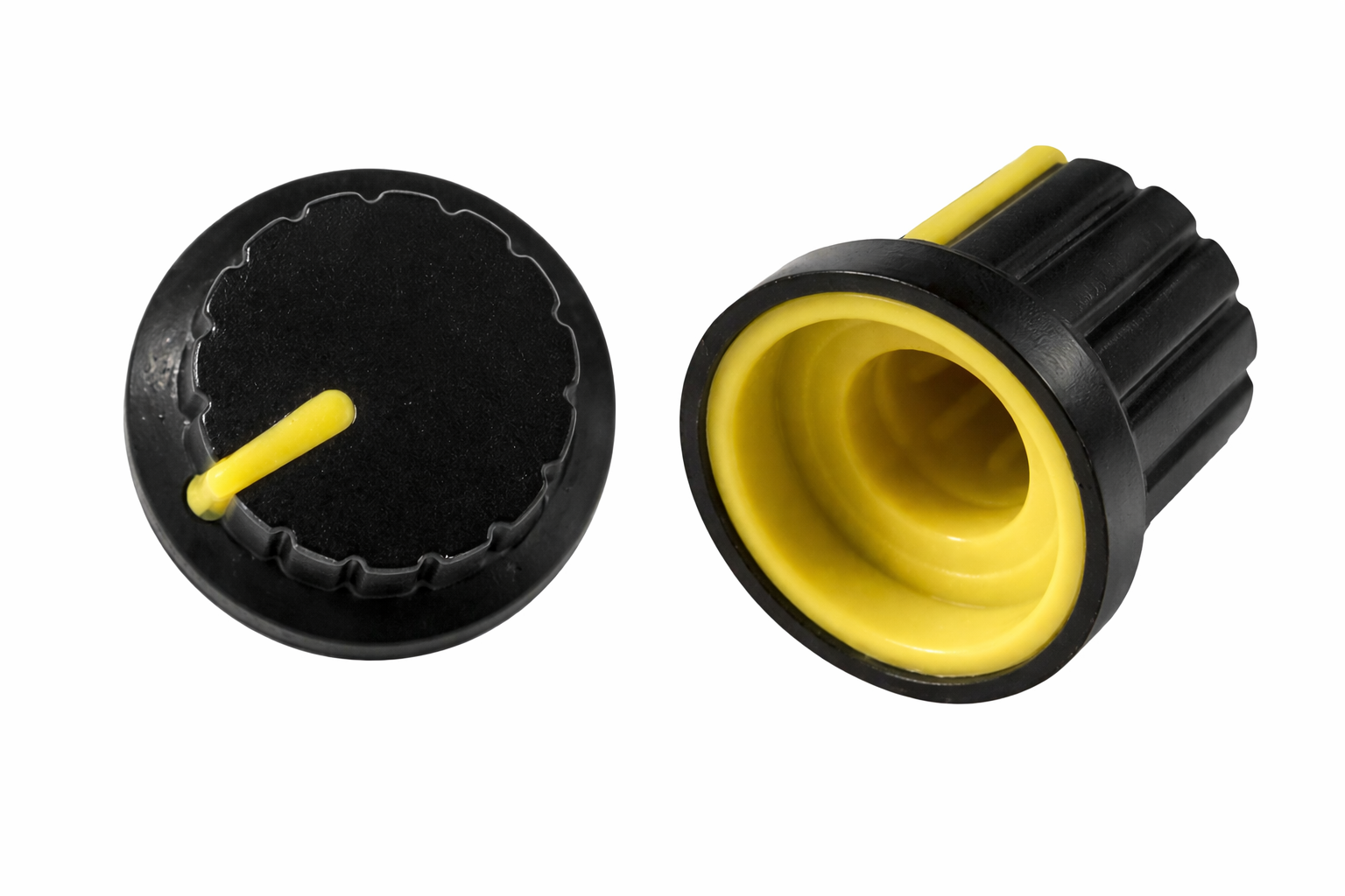 Esta perilla de plástico amarilla ofrece un control preciso para potenciómetros en tus proyectos de electrónica y robótica. Su diseño ergonómico y línea indicadora facilita la visualización del ajuste en cualquier proyecto.
