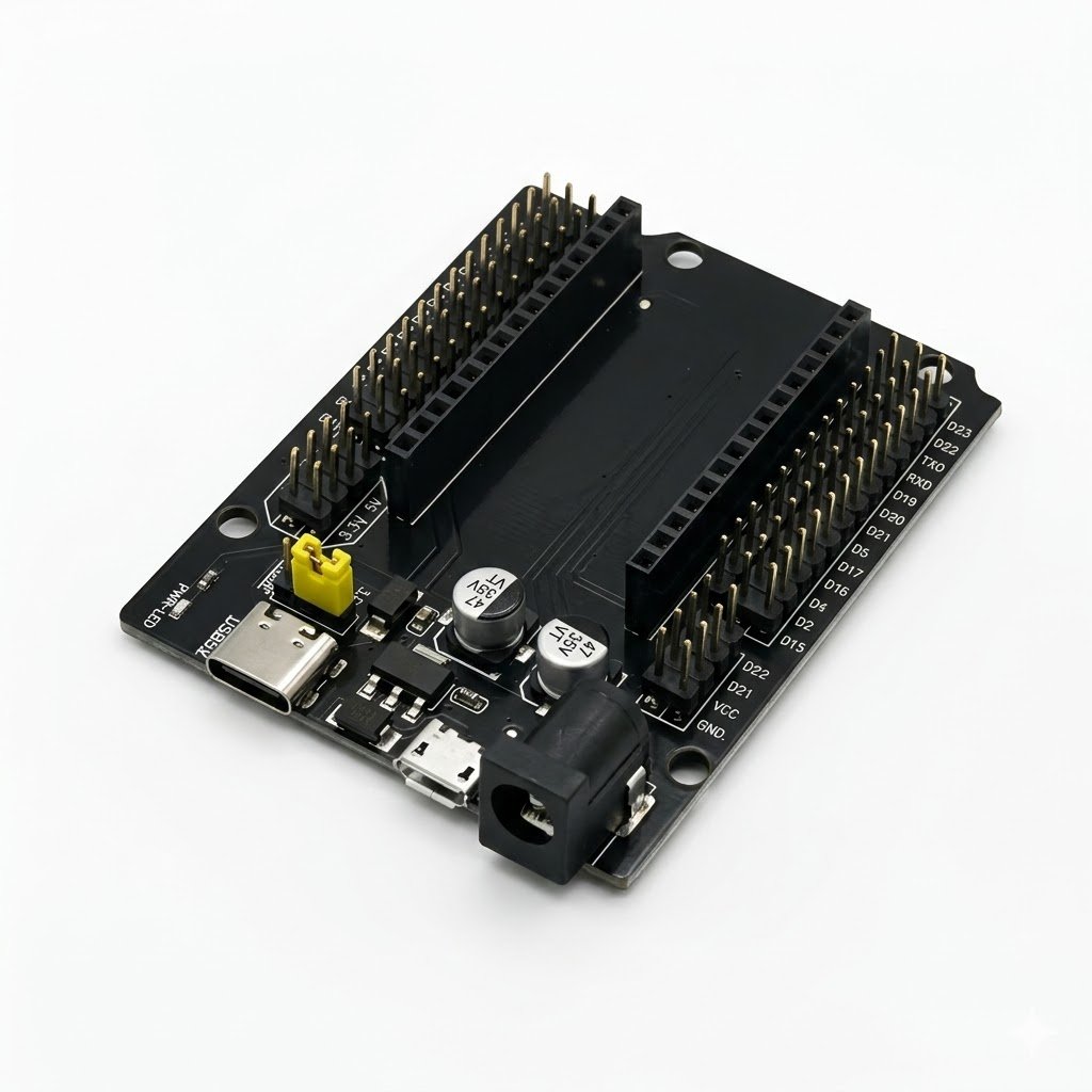 Shield expansora para la tarjeta de desarrollo DOIT ESP32 de 30 pines, que facilita las conexiones. Proporciona salida para cada pin, así como voltaje seleccionable de 3.3V / 5V y GND.
