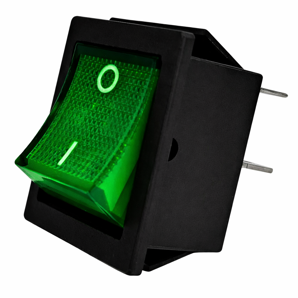 Este switch balancín verde ON/OFF está diseñado para brindar un control cómodo y visible en proyectos electrónicos y montajes educativos. Gracias a su iluminación y formato para panel, permite dar un acabado más profesional a tableros, cajas de control y equipos DIY.