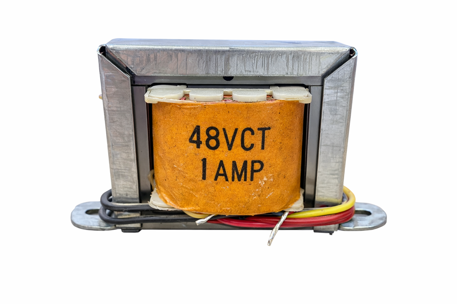 Este transformador reductor convierte una entrada de 110V CA en una salida de 48V CT CA con capacidad de 1A, por lo que es útil en proyectos de alimentación, prácticas de laboratorio y montajes electrónicos que requieren voltaje alterno con derivación central. Su estructura metálica con base de montaje facilita su instalación en chasis, gabinetes y tableros de prueba.