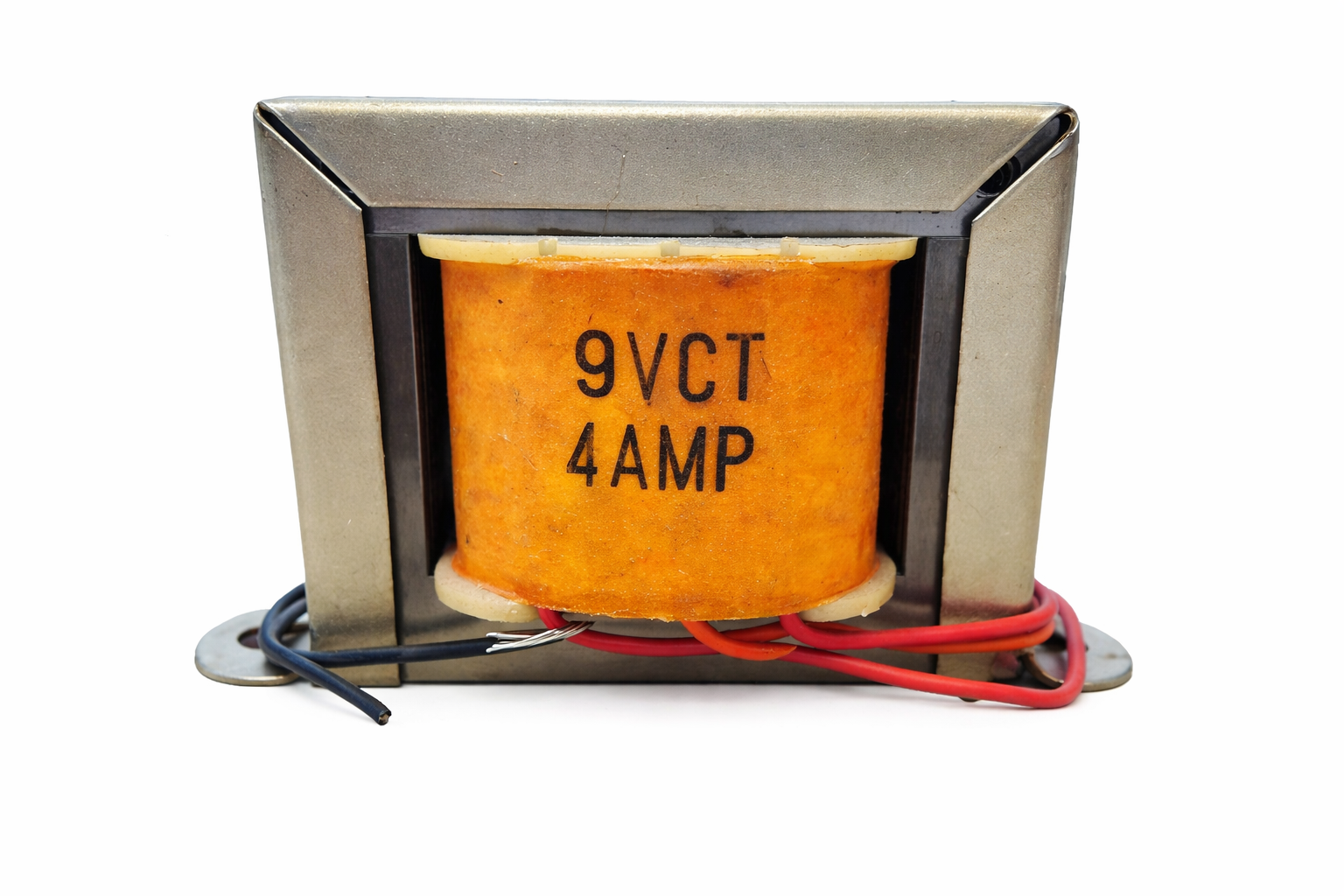 Alimenta tus proyectos con una solución estable y confiable usando este transformador de 110V a 9V 4A. Su construcción con núcleo laminado y montaje tipo chasis lo hace ideal para fuentes lineales, prácticas escolares, automatización y proyectos de electrónica donde se requiere una conversión de voltaje segura. La imagen del producto muestra claramente el marcado 9VCT 4AMP sobre la bobina.